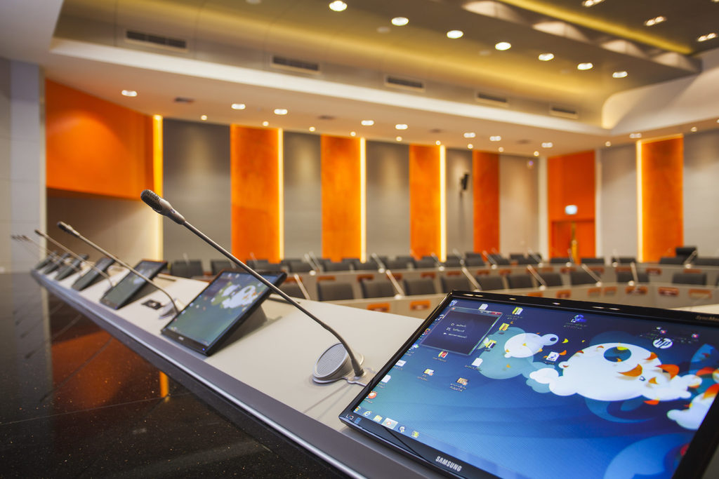 ภาพ: ห้องประชุมที่ใช้ไมโครโฟนแบบ Gooseneck