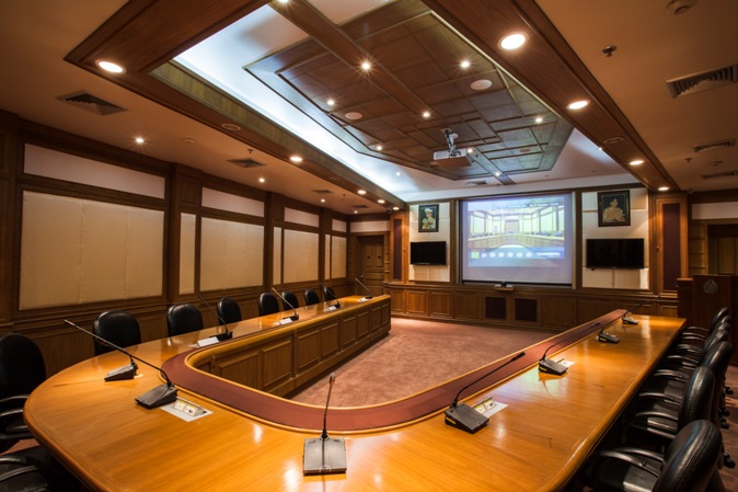 ตอบสนองการสื่อสารเพื่อการประชุมได้ด้วยชุดประชุมแบบตั้งโต๊ะ พร้อมระบบเสียงที่สามารถนำเสนองานในลักษณะ Multi-Media ร่วมกับระบบภาพได้ โดยออกแบบให้มีลำโพงด้านหน้าห้องประชุมที่ติดตั้งอย่างกลมกลืนกับงานตกแต่งภายใน (Built-in) และลำโพงเพดานเพื่อการกระจายเสียงภายในห้องได้อย่างคลอบคลุม พร้อมระบบภาพที่ถูกออกแบบให้สามารถนำเสนอข้อมูลต่างๆทั้งจากภายในห้องควบคุม และบริเวณที่นั่งของผู้ร่วมประชุมได้ โดยส่งสัญญาณผ่านอุปกรณ์เต้ารับสัญญาณ (Inlet) ที่ติดตั้งฝังลงบนโต๊ะประชุมเพื่ออำนวยความสะดวกในการนำเสนอข้อมูลของผู้ร่วมประชุม อีกทั้งยังสามารถนำเสนอข้อมูลที่แตกต่างกันได้พร้อมๆกันโดยนำเสนอผ่านเครื่องฉายภาพ (Projector) และ จอภาพ (LCD Screen Display) ที่ติดตั้งอยู่ด้านข้างทั้ง 2 ข้าง ของจอรับภาพ
